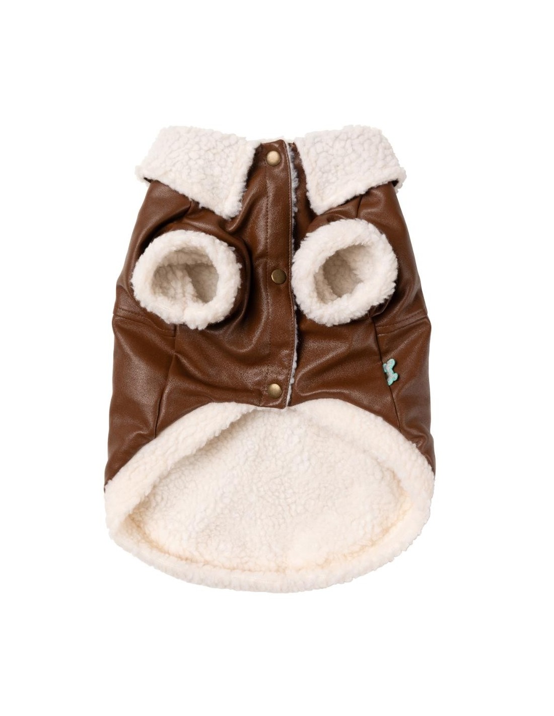Su elegante exterior de piel sintética marrón le da un aire vintage y sofisticado, mientras que el forro interior de borreguito garantiza una calidez suave y acogedora. El cuello de borreguito, que puede levantarse para proteger del viento, añade funcionalidad sin perder estilo.